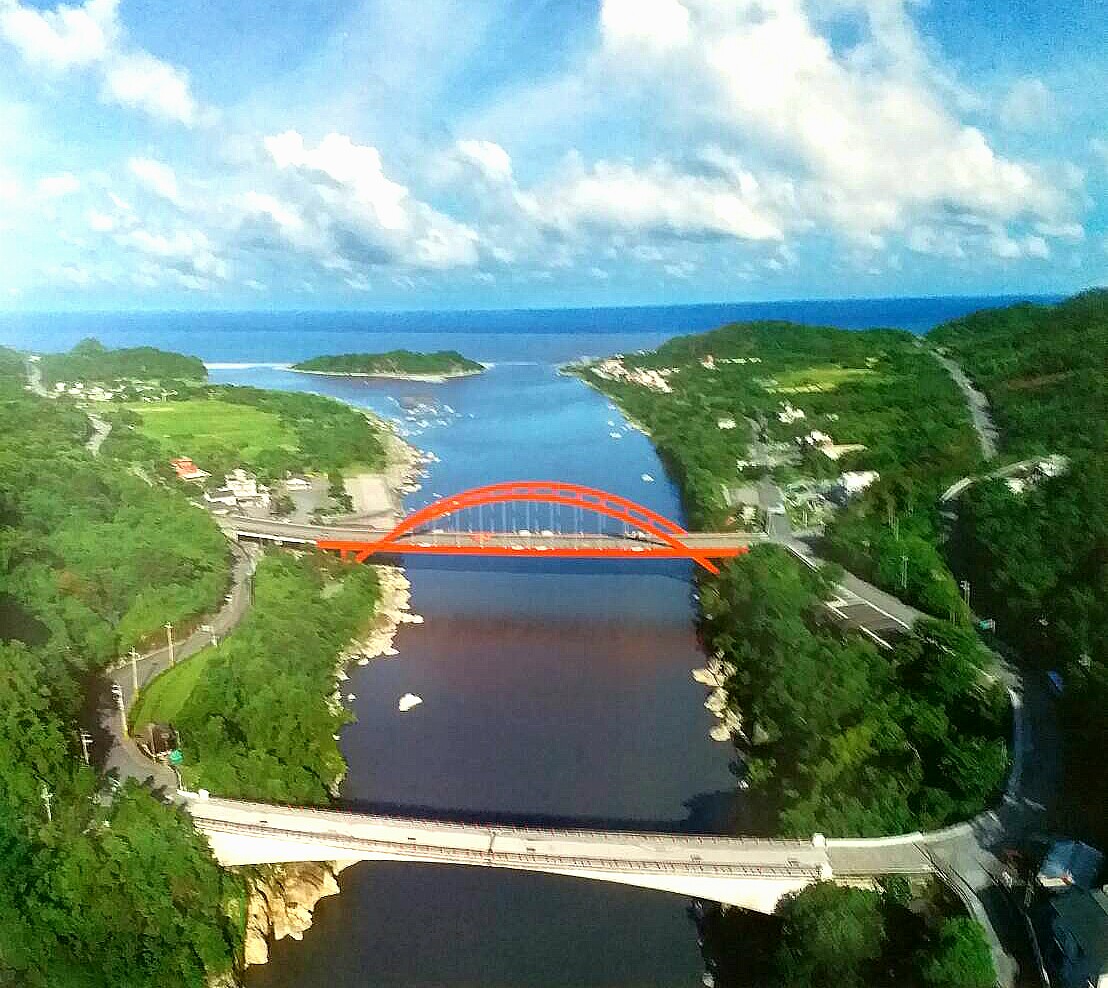 秀姑巒溪出海口,長虹橋,奚卜蘭島。本圖摘自「南亞塑膠公司2018年月曆一月」。